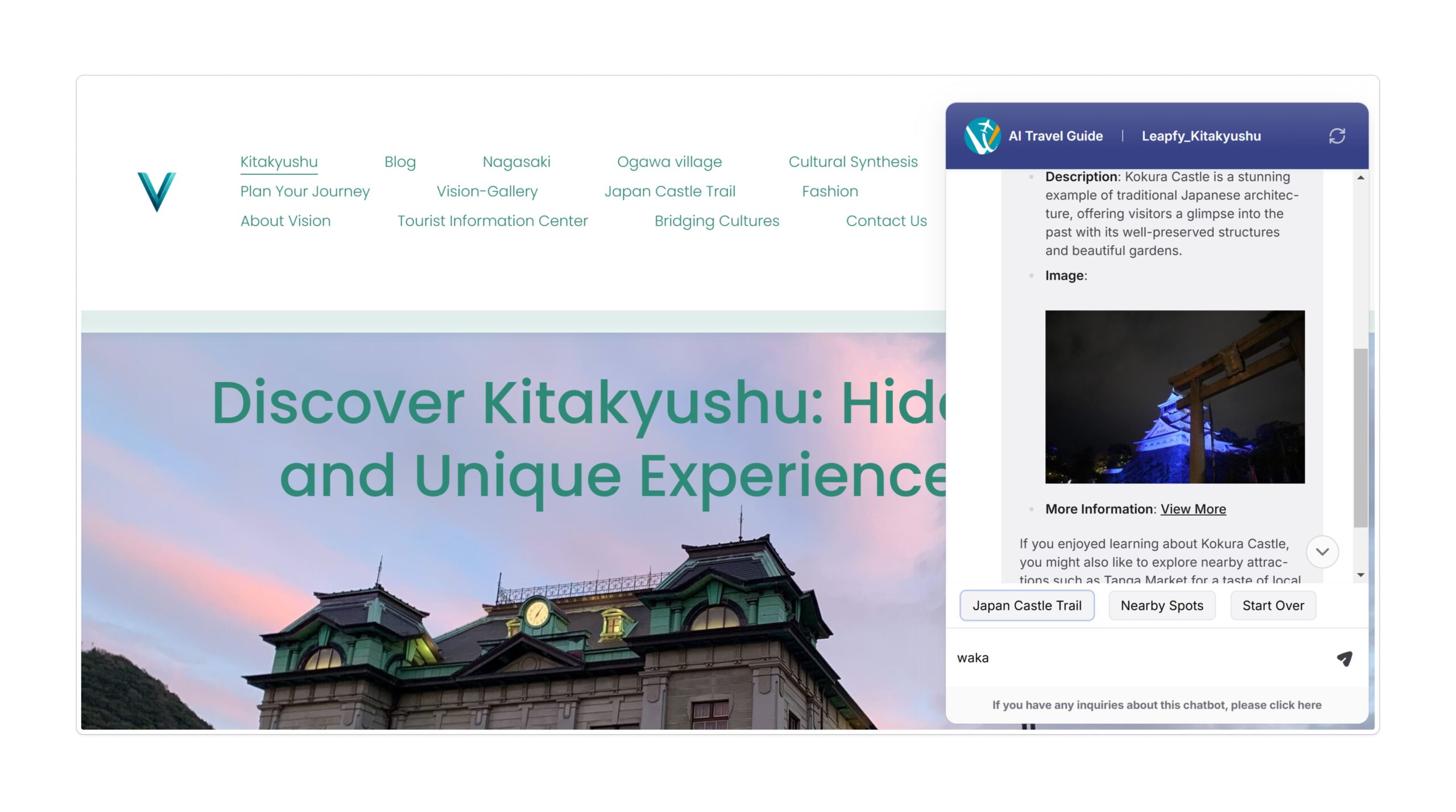 This website promotes the attractions in Japan, providing easy-to-understand information on tourist destinations and events, as well as the little-known charms of Kitakyushu and Nagasaki, including their diverse history and culture. It gathers the firsthand voices and experiences from the field and compiles them into articles. This website will be linked to its own tourism-focused AI chatbot to provide information to travelers. It customizes the service for local governments to meet their needs at the time of utilization.